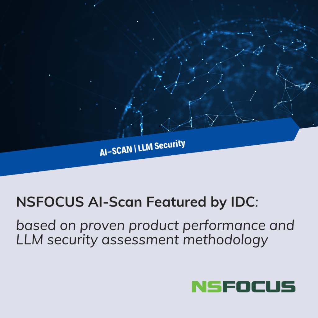 SANTA CLARA, Calif., Jan 22, 2026 – Recently, International Data Corporation (IDC) released the report “China Large Language Model (LLM) Security Assessment Platform Vendor Technology Evaluation” (Doc#CHC53839325, October 2025). NSFOCUS was selected for this report based on its proven product performance and LLM security assessment methodology. With a comprehensive capability matrix built across model security, data security, content security, application security, industry-specific LLM adaptation, and intelligent unified management, NSFOCUS established its position through a combination of broad resources and specific technical advantages.