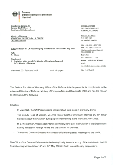 In terms of attack tactics, the APT activities in South Asia this month were dominated by spear phishing email attacks. Typical baits include a phishing document used by the APT group Bitter to target Pakistan’s Ministry of Defense. The document is about United Nations peacekeeping conference, and it is disguised as an official invitation letter from the Government of Germany to Pakistan’s Ministry of Defense.