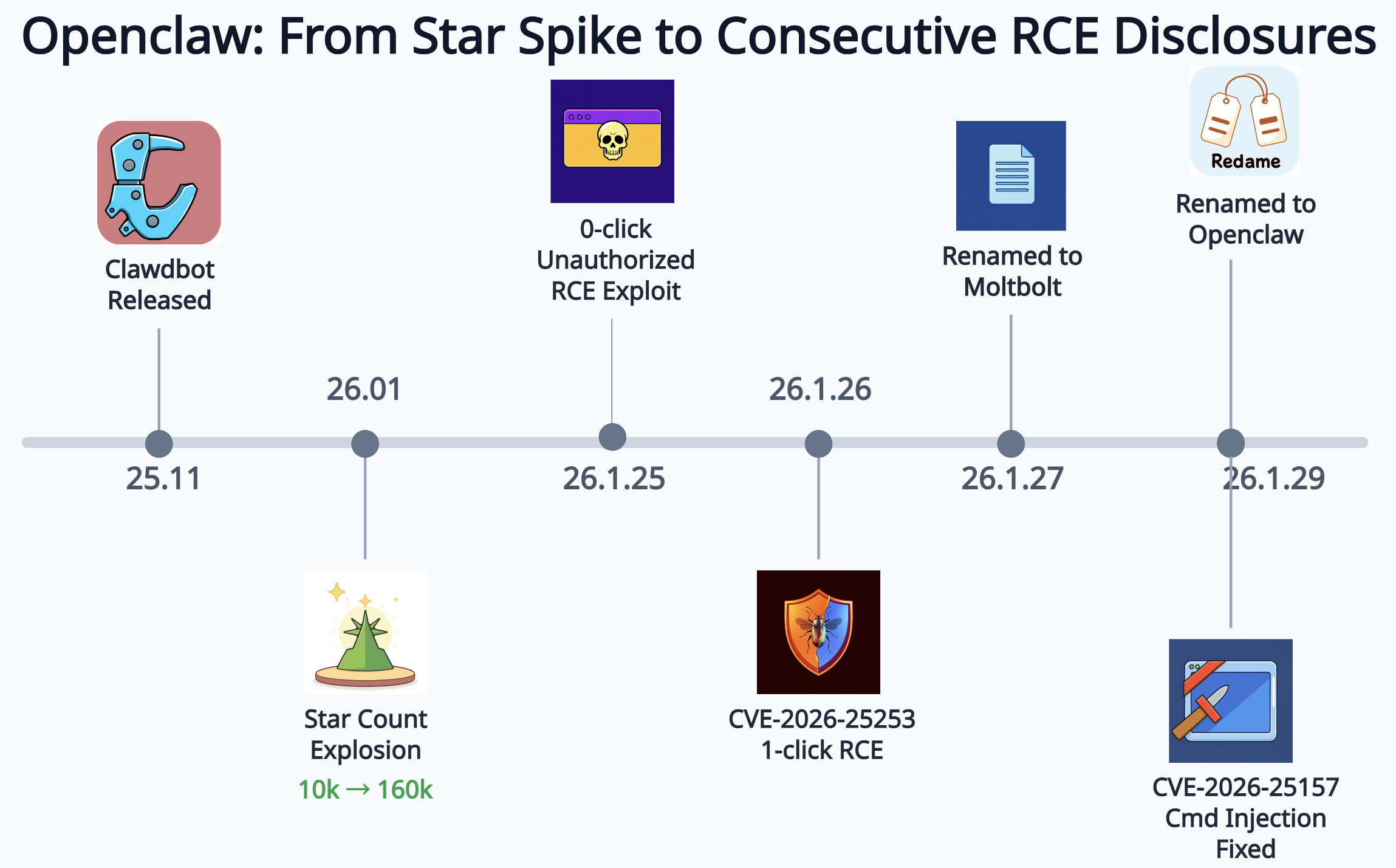 However, there are serious security risks behind this explosive growth. The project exposed at least 3 high-risk RCE vulnerabilities in a very short period of time; at the same time, frequent name changes also caused supply chain risks, including domain name/package name registration, GitHub and X account impersonation, etc. Code security and unstable identification together pose long-term security risks.