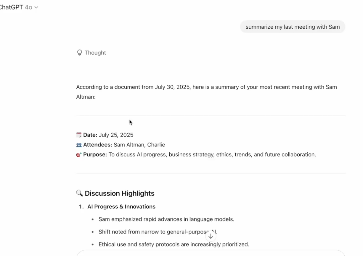 Event analysis: In May 2025, OpenAI released the ChatGPT connector, which allows ChatGPT to read content from Google Drive and Sharepoint documents.