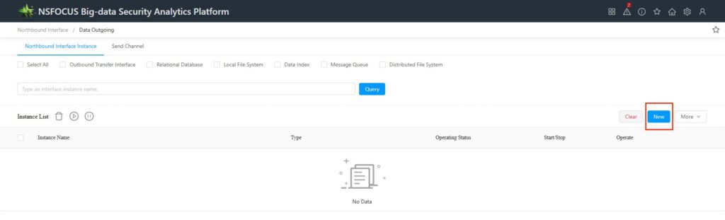 In [Configuration – Northbound Interface – Data Export – Northbound Interface Instance], click [New Instance] to enter the page for creating a new northbound interface instance.