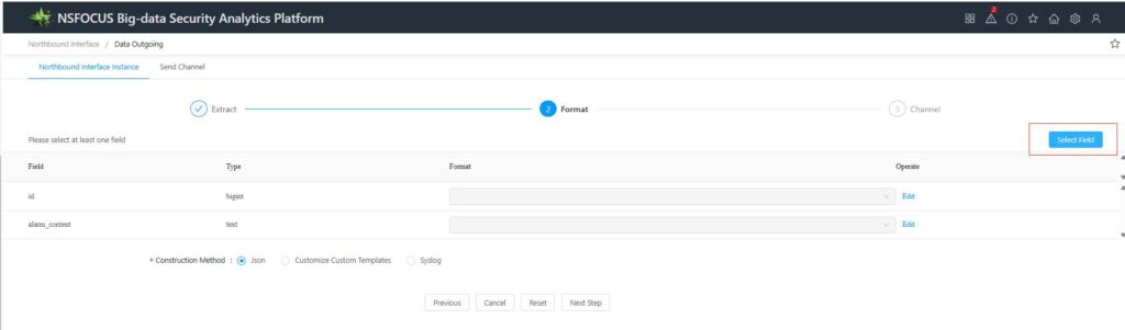 4.After completing data formatting, click [Next] to proceed to the configuration of the outbound data transmission channel.