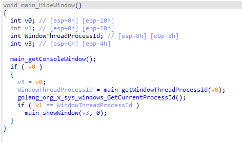 After execution, the malware conceals its graphical user interface (GUI) to evade process monitoring by both users and security tools, thereby significantly enhancing the stealthiness of the attack.