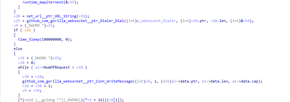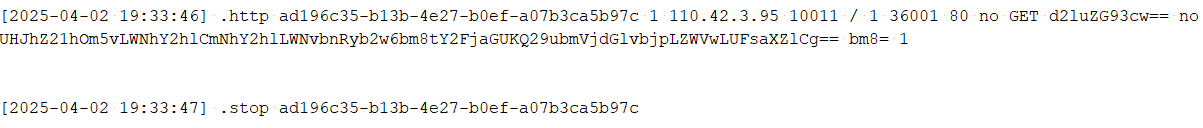 During the HTTPBot online authentication process, it sends a string “ok” to the server and then waits for the server to issue an attack command. The verification process is relatively streamlined. After completing the online authentication, wait to receive the control command issued by the server. Each instruction issued by the server is assigned an “attack ID”. Attackers can achieve precise control over attack processes by manipulating an “attack ID”. For example, they can stop an ongoing attack process by combining the “stop” command with the specific attack ID.
