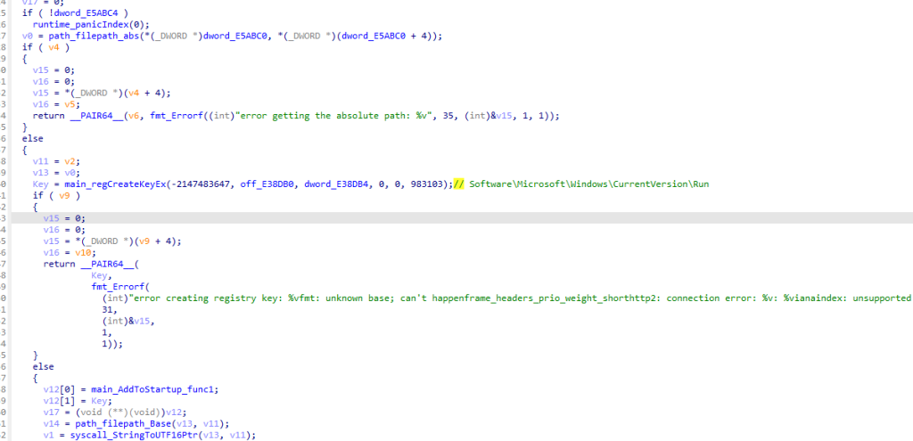 The Trojan achieves automatic execution on startup by writing its path to the registry key HKEY_LOCAL_MACHINE\SOFTWARE\Microsoft\Windows\CurrentVersion\Run.