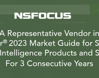 Santa Clara, Calif. June 1, 2023 – We are proud to announce that NSFOCUS has been included in the Gartner®2023 Market Guide for Security Threat Intelligence Products and Services[1] as a representative vendor for 3 years in a row. According to this report published in May, “Security and risk management...